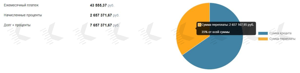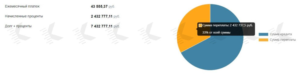 Начисленные проценты: 2 432 777.11 руб. (экономия 405 549.35 руб.)