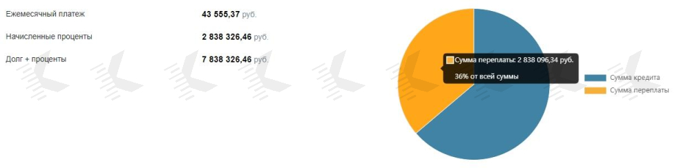 В случае, если бы мы платили строго по схеме, то переплаты составят 2 838 326.46 руб.