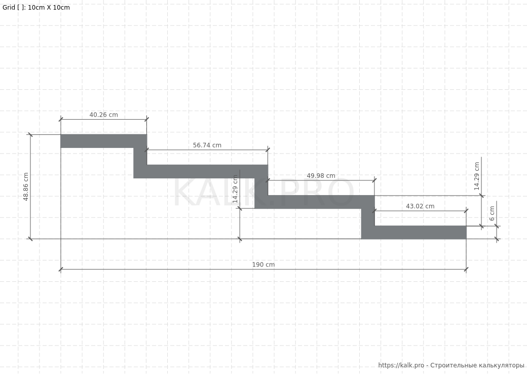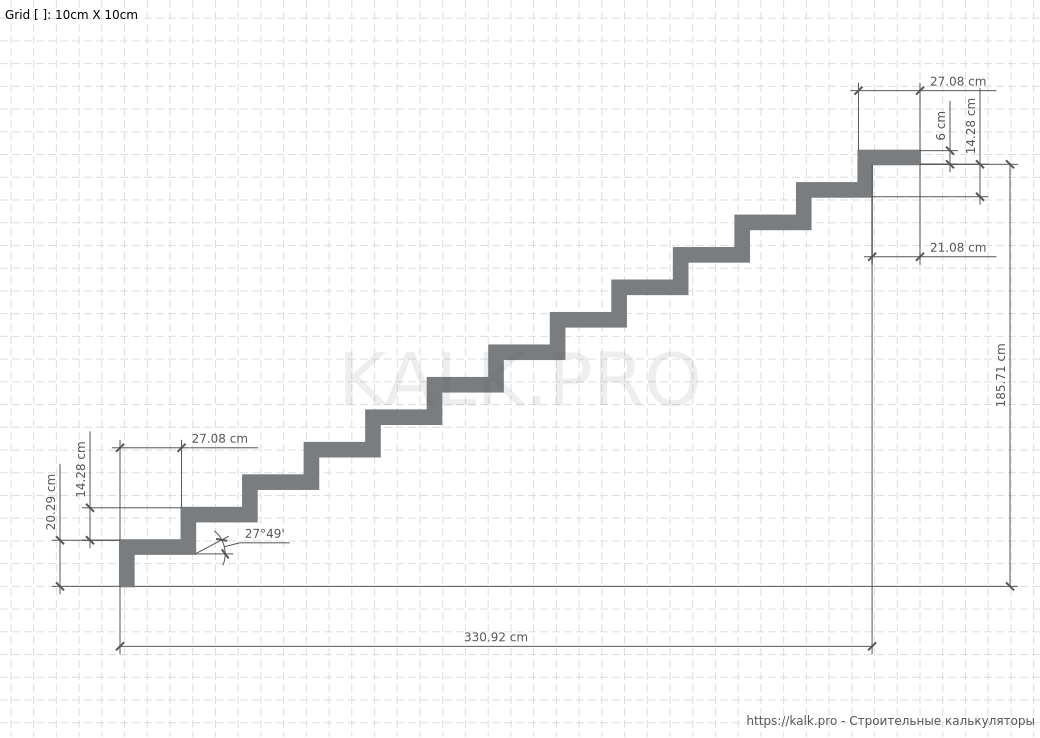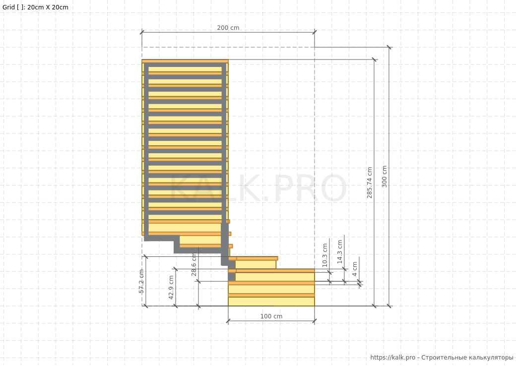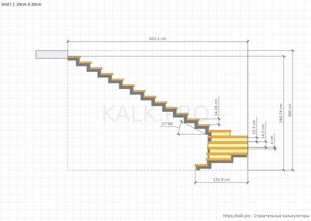 * требуется только для визуализацииШаг 14. Внимательно проверьте все значения и выполните расчет П-образной металлической лестницы на 180° с поворотными ступенями, нажав на кнопку «Рассчитать» в онлайн-калькуляторе.