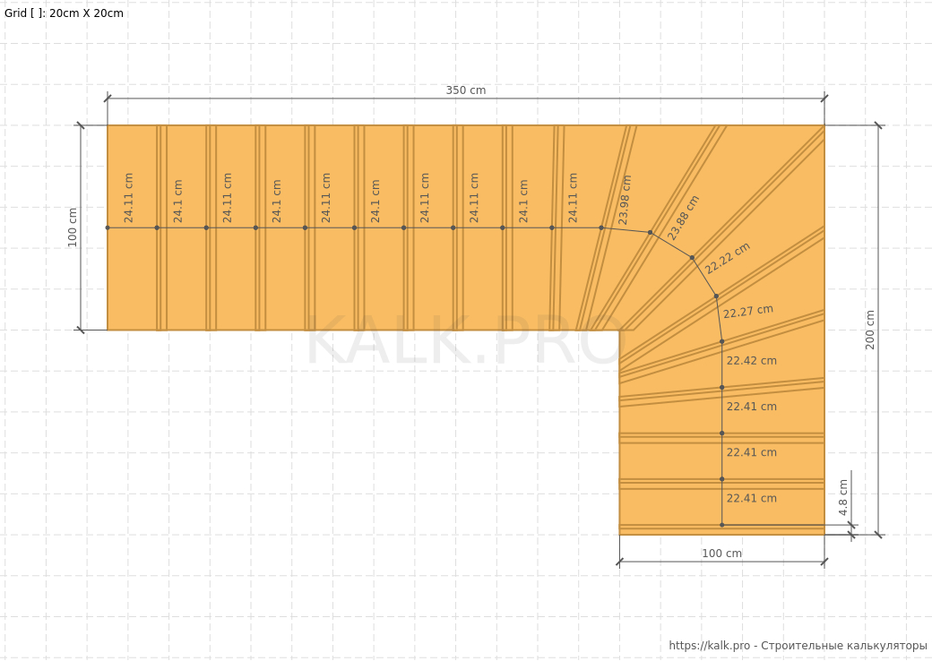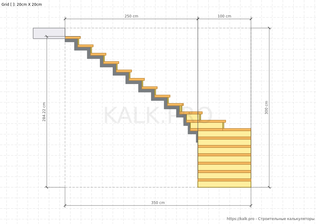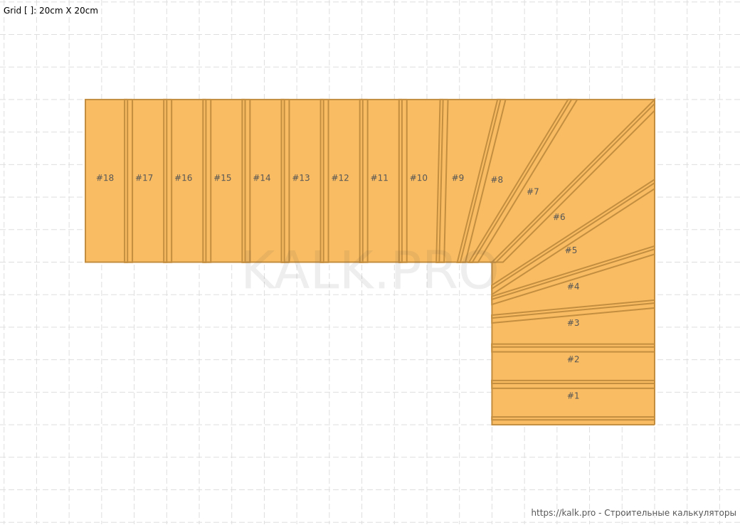 Как рассчитать лестницу с поворотом на 90° на металлическом монокосоуре онлайн?