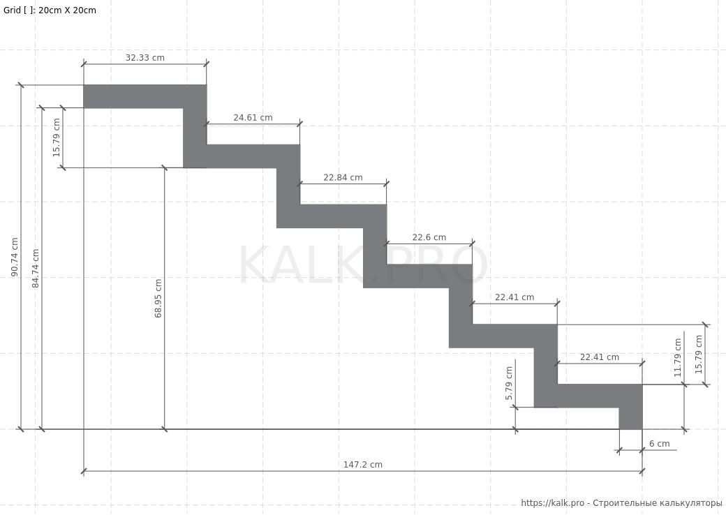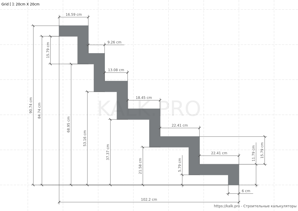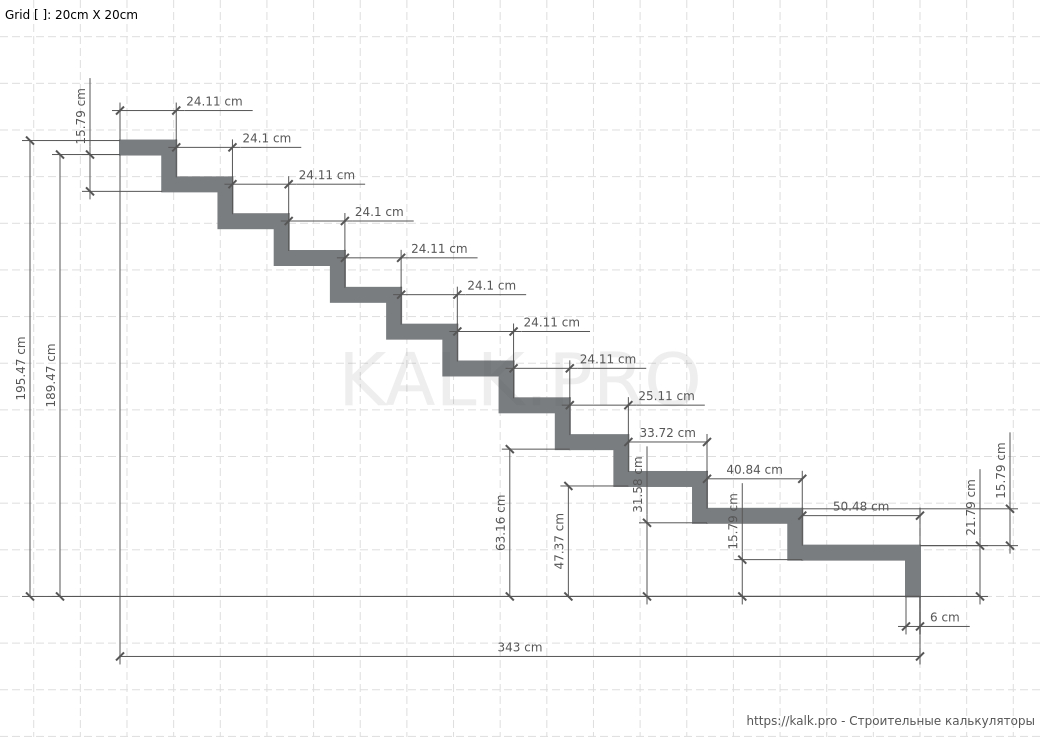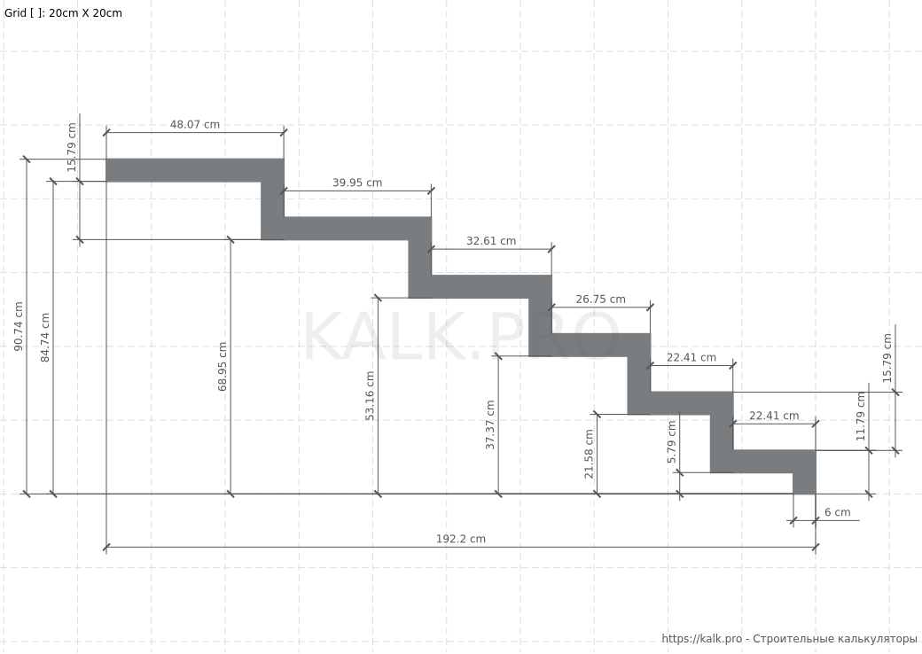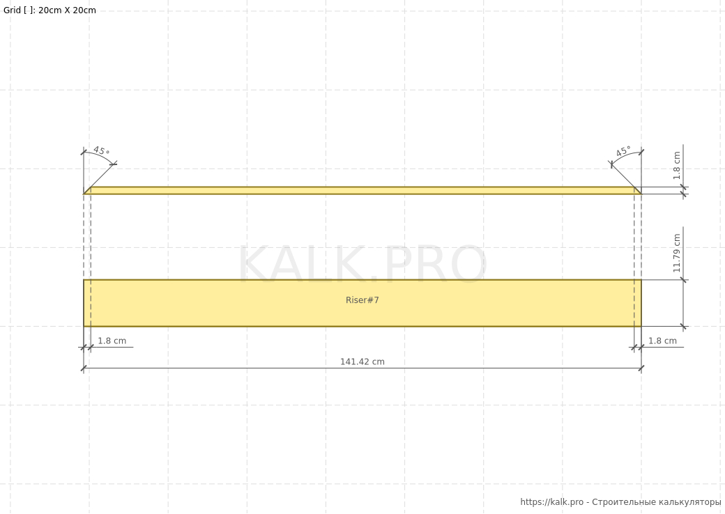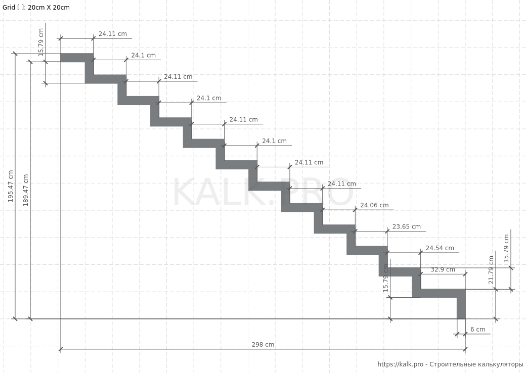 * требуется только для визуализацииШаг 11. Внимательно проверьте все значения и выполните расчет лестницы на 90° на металлическом монокосоуре, нажав на кнопку «Рассчитать» в онлайн-калькуляторе.